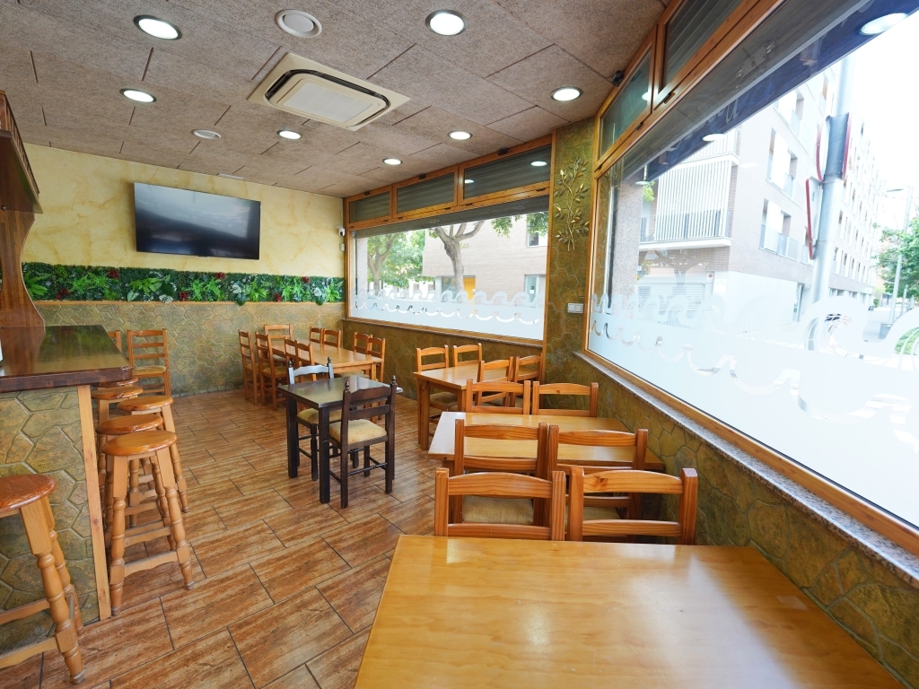 Local todo diáfano, acogedor y con mucho encanto, con capacidad para 10 mesas o más, zona de barra con taburetes, local completamente insonorizado, ambiente cálido y distribución muy cómoda tanto para clientes como para el servicio. Cuenta con licencia en vigor de 8:00 a 23:00.