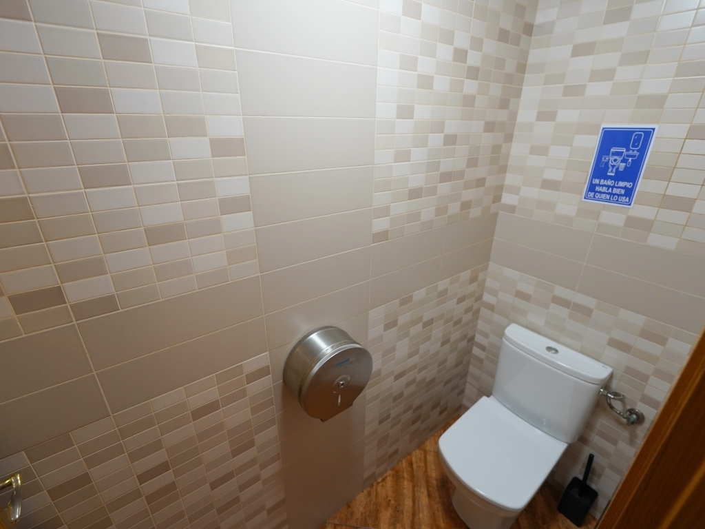 El local cuenta con dos baños (1 para hombres y 1 para mujeres adaptado para personas con movilidad reducida), cumpliendo normativa.