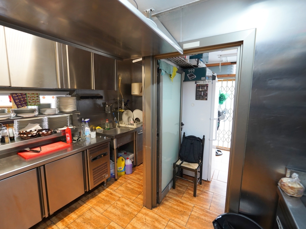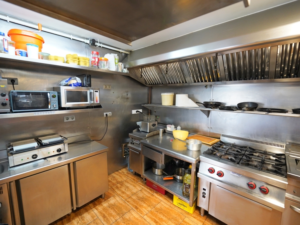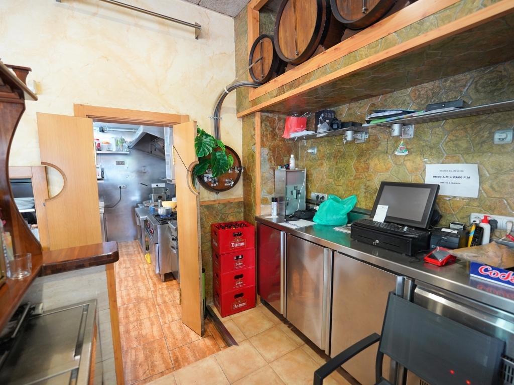 Dispone de cocina profesional con salida de humos, totalmente equipada con plancha, freidora, microondas, neveras, congeladores, lavavajillas y puerta directa desde la cocina a la calle, además dispone de una barra completamente equipada con; neveras, congeladores, dispensador de cerveza, cafetera, mobiliario y menaje necesarios para continuar trabajando desde el primer día.